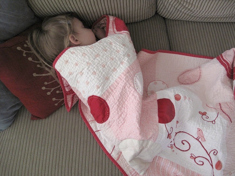 I’ve been knitting a lot. Knitting in the lobby of The Boy’s dojo, while waiting alone for him, without The Girl (as I usually do). Knitting in the bathroom, keeping The Girl company while she took a cool bath. Knitting on the couch while she rested under her baby quilt because she simply insisted that I sit with her, even though she was sleeping.